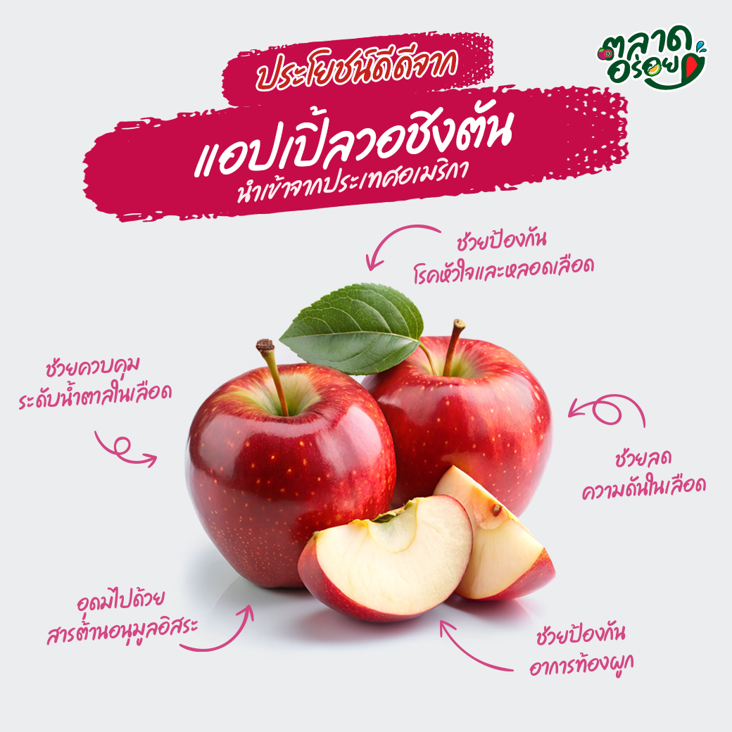 แอปเปิ้ลวอชิงตัน นำเข้าจากประเทศอเมริกา (แพ็ก 5 ลูก) สีแดงสด เนื้อแน่นกรอบ รสชาติหวานอมเปรี้ยวเล็กน้อย
